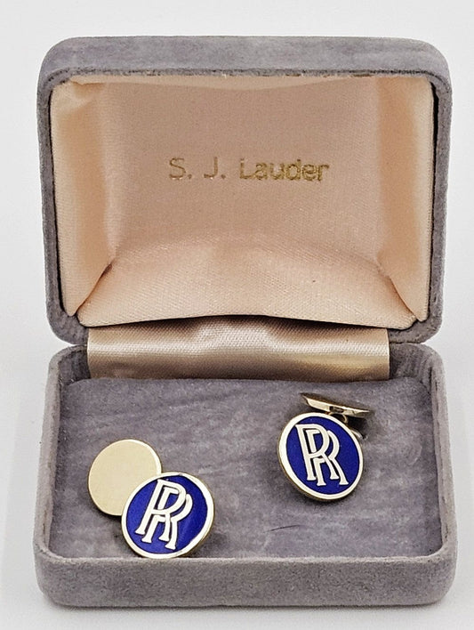 Bespoke Lauder London UK Rolls Royce Logo Sterling & Enamel Cufflinks 1987