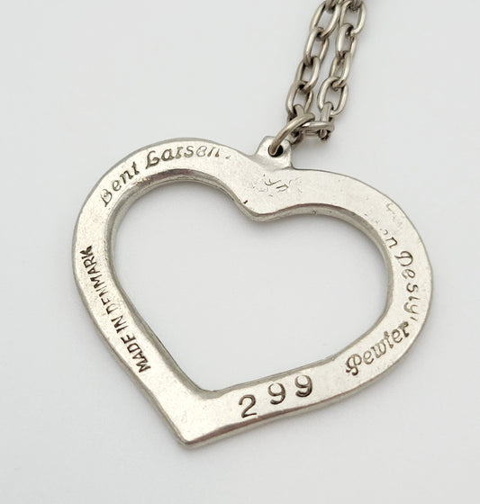 Bent Larsen Designs Denmark Pewter Heart Pendant Necklace #299 C.1960s