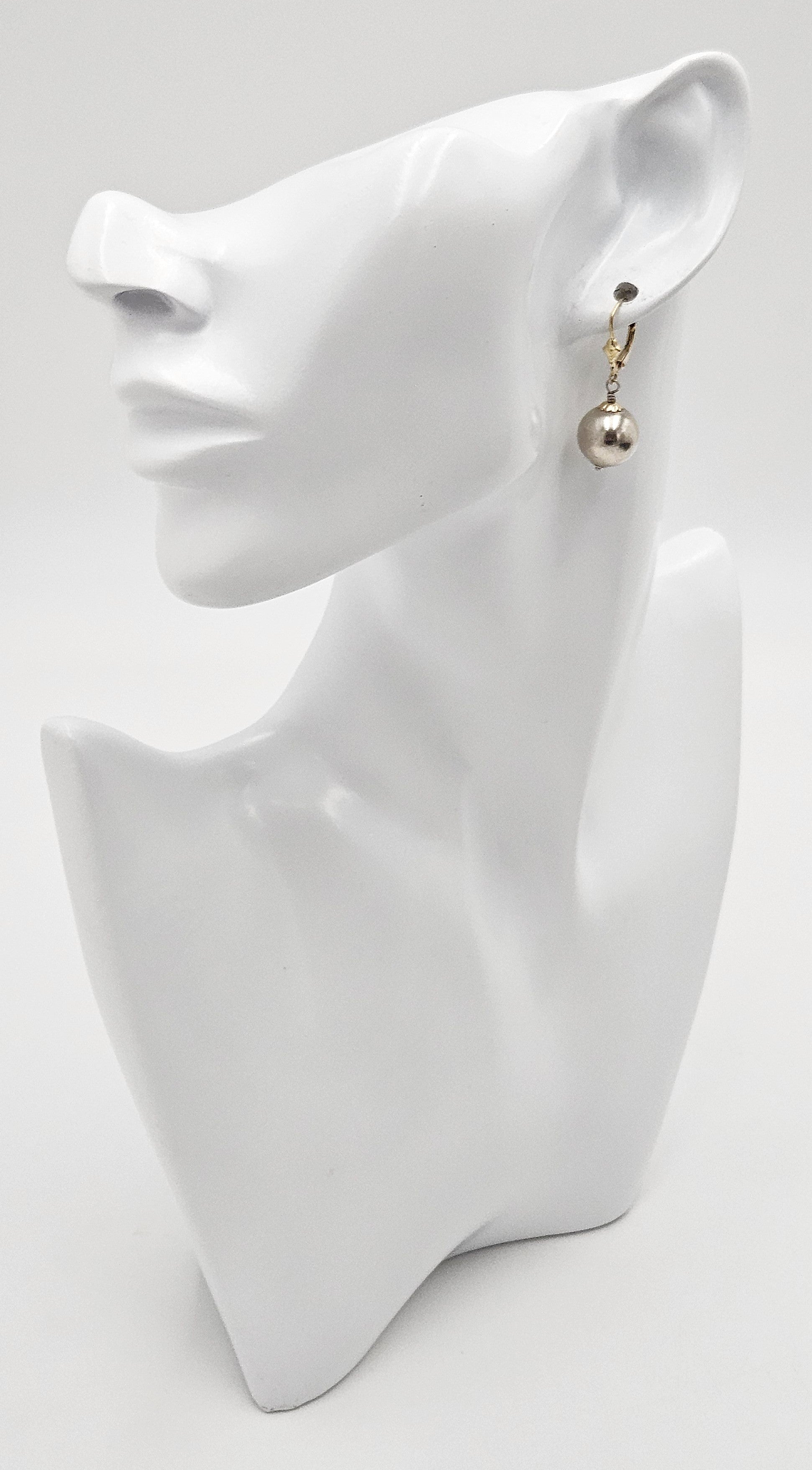 Beautiful, classic and timeless modernist earrings by boutique artisan Phil Reeder of PA. Earrings feature 14k yellow gold French clip closures with sterling silver orbs dangling that are held in place by 14k yellow gold decorative top and bottom caps. They have been professionally polished and look like new.