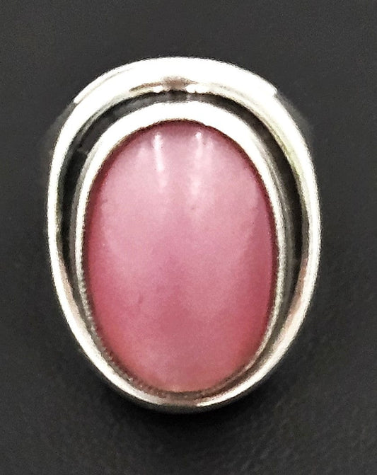 Danish Hermann Siersbol Modernist Sterling Rose Quartz XL Unisex Ring 1960s