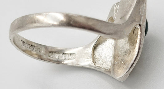Danish Ibsen & Weeke Sterling Green Chalcedony Brutalist Modernist Ring 1960s