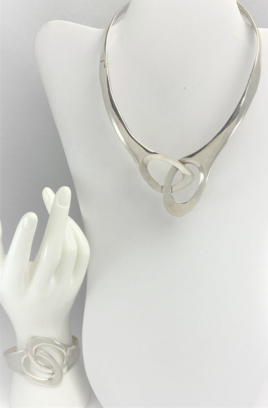Superb Alicia Taxco 950 Sterling Modernist Statement Necklace Cuff Set 1980s