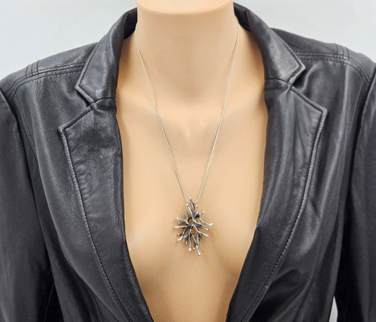 Vintage Artisan Signed Sterling Modernist Brutalist Brooch Pendant Necklace