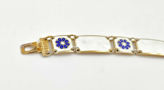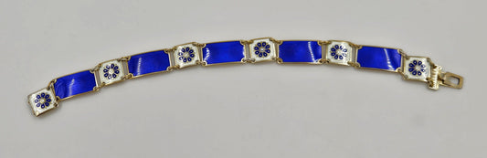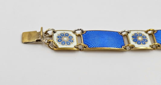 David Andersen Norway Sterling & Enamel Art Deco Floral Panel Bracelet 1940s