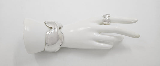 Robert Lee Morris Sterling Modernist Bone Cuff Bracelet Matching Ring Set 80's