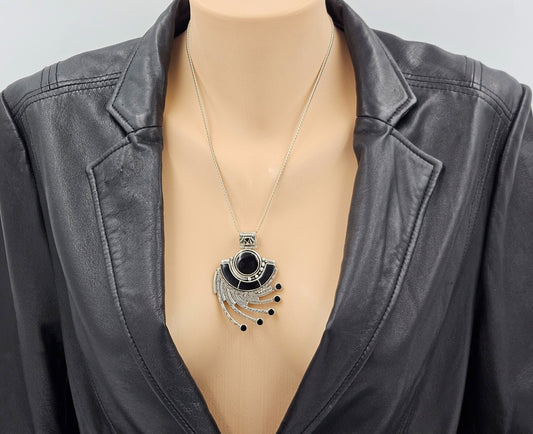 OOAK Victor Yurivilca Sterling Onyx Abstract Large Statement Pendant Necklace