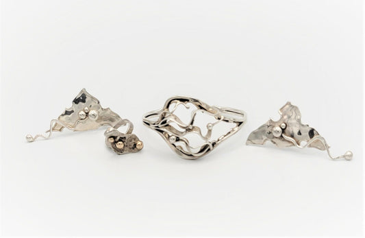 Designer TJM Sterling 14kt Abstract Modernist Earrings Ring Bracelet SET 1990s