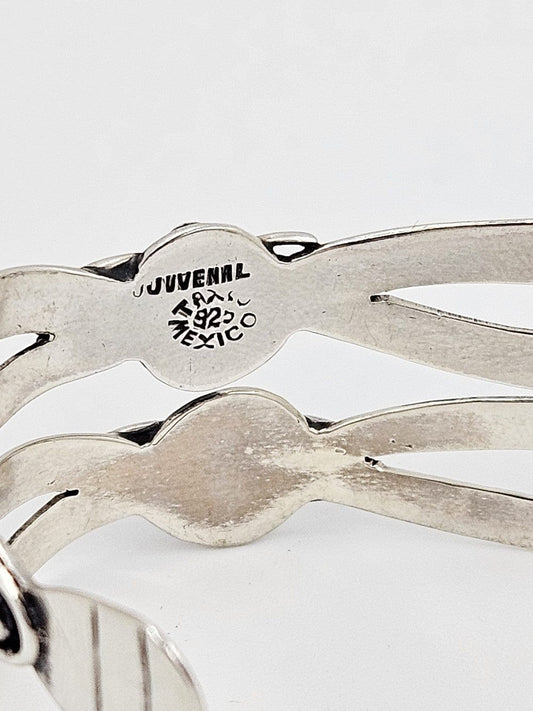 Taxco Artist Juvenal Sterling Silver Ornate Cuff Bracelet Circa 1960s Eagle 2