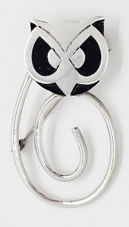 Taxco Designer Sterling Modernist Impressionism Owl Bird Brooch Circa 1950s