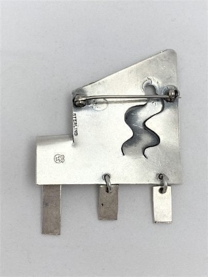 RARE 925 Sterling Silver Abstract Modernist Brooch Signed Sam Kramer 1960s