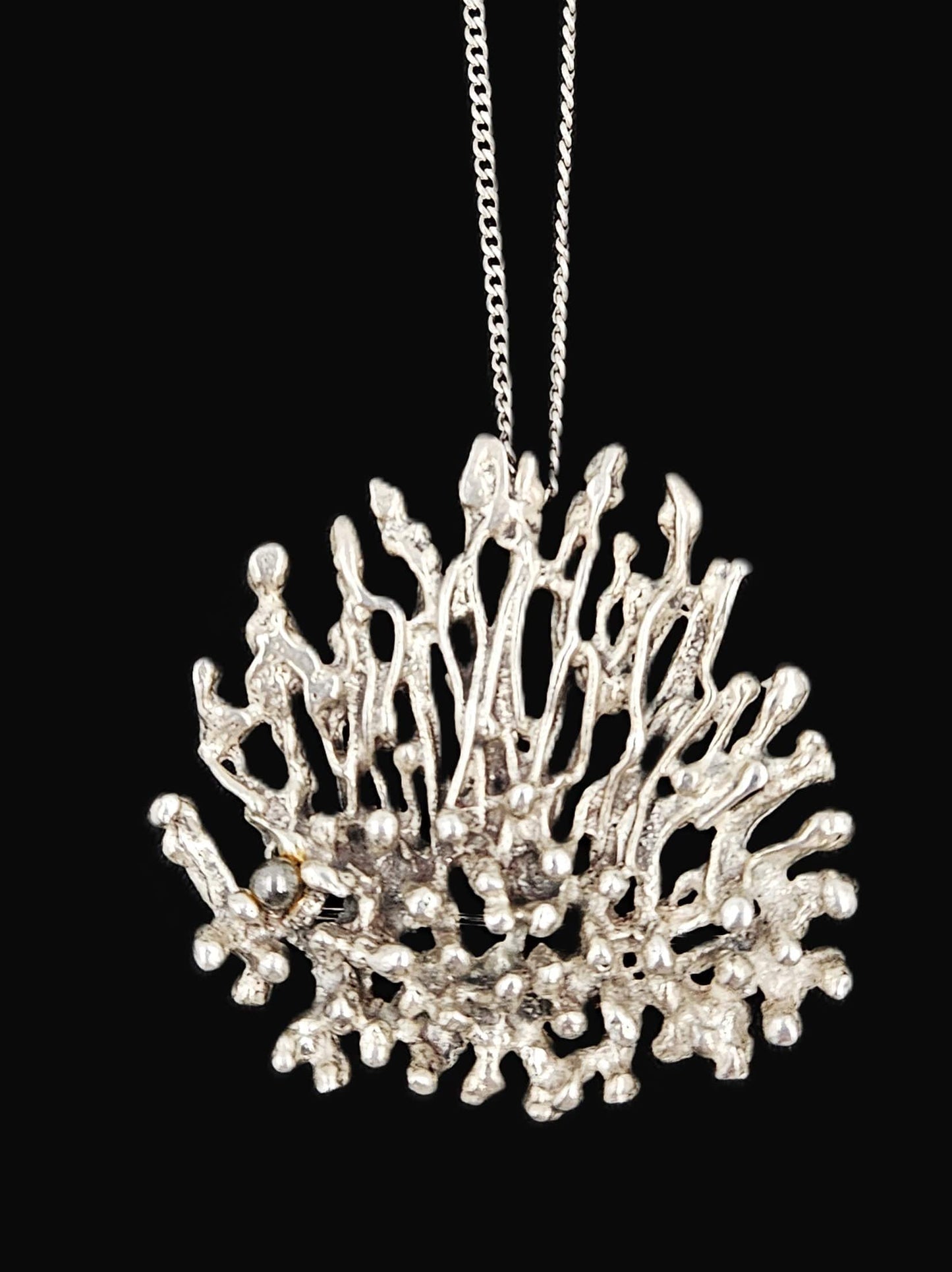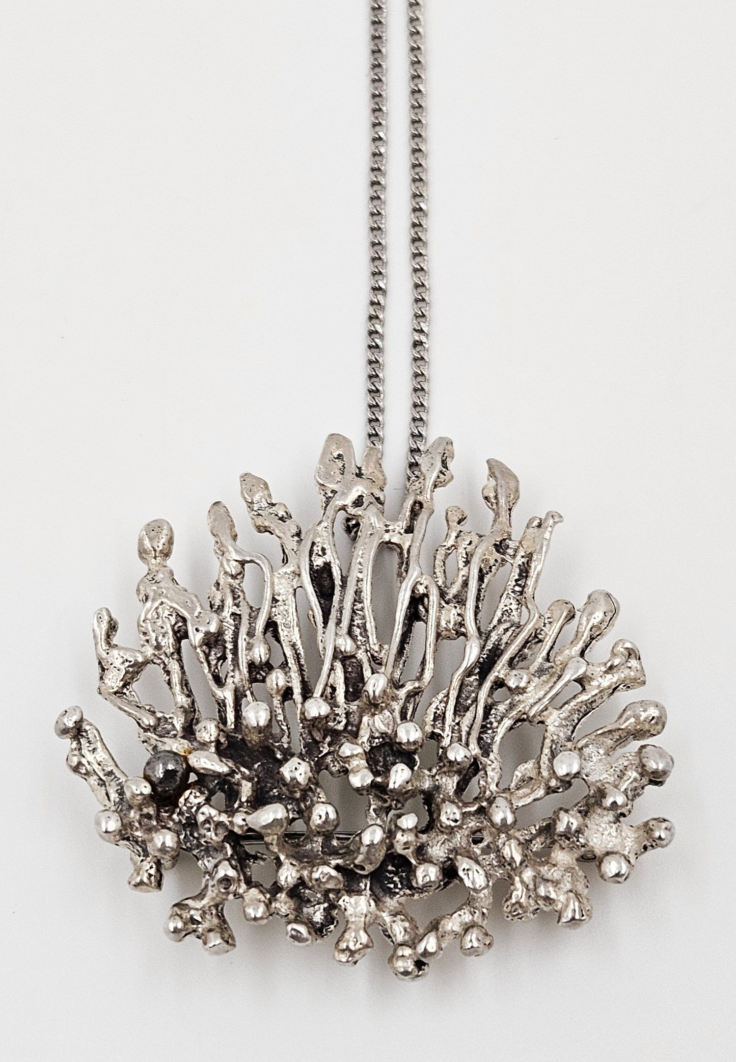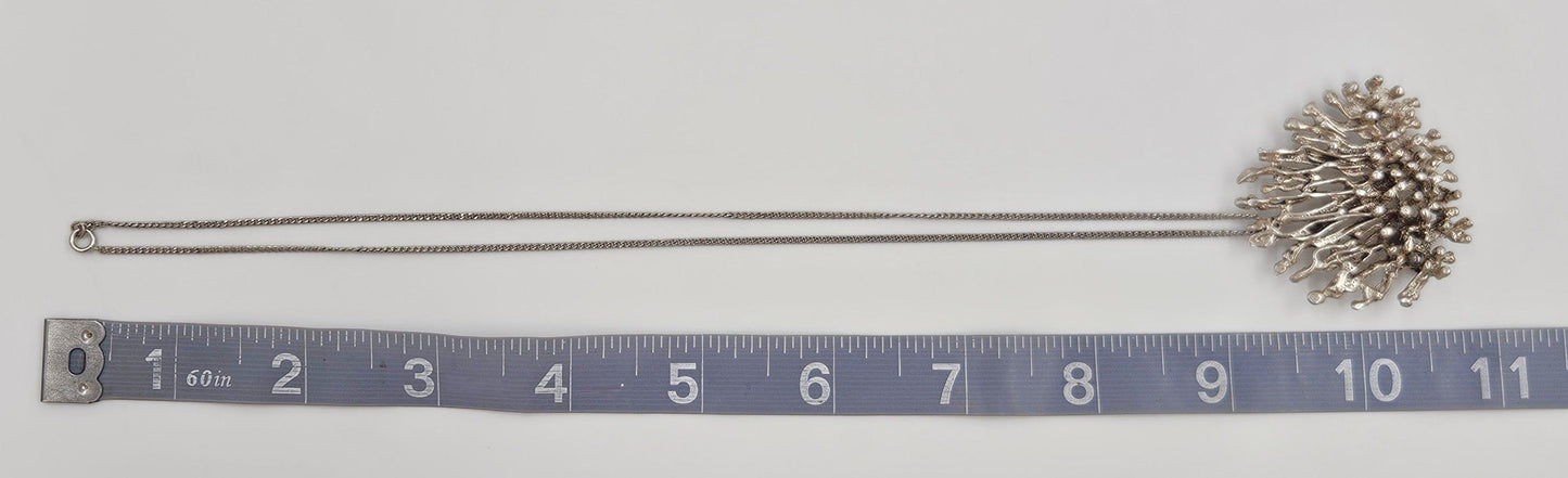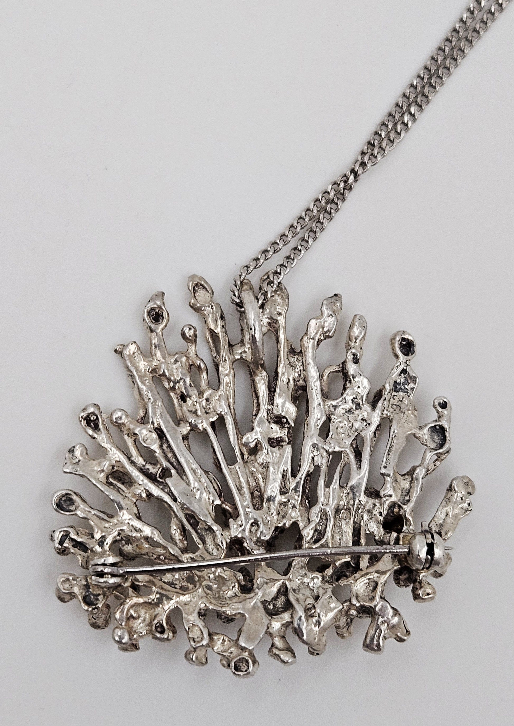 Artisan Signed Sterling Silver Abstract Brutalist 3D Pin/Pendant Necklace 1960s