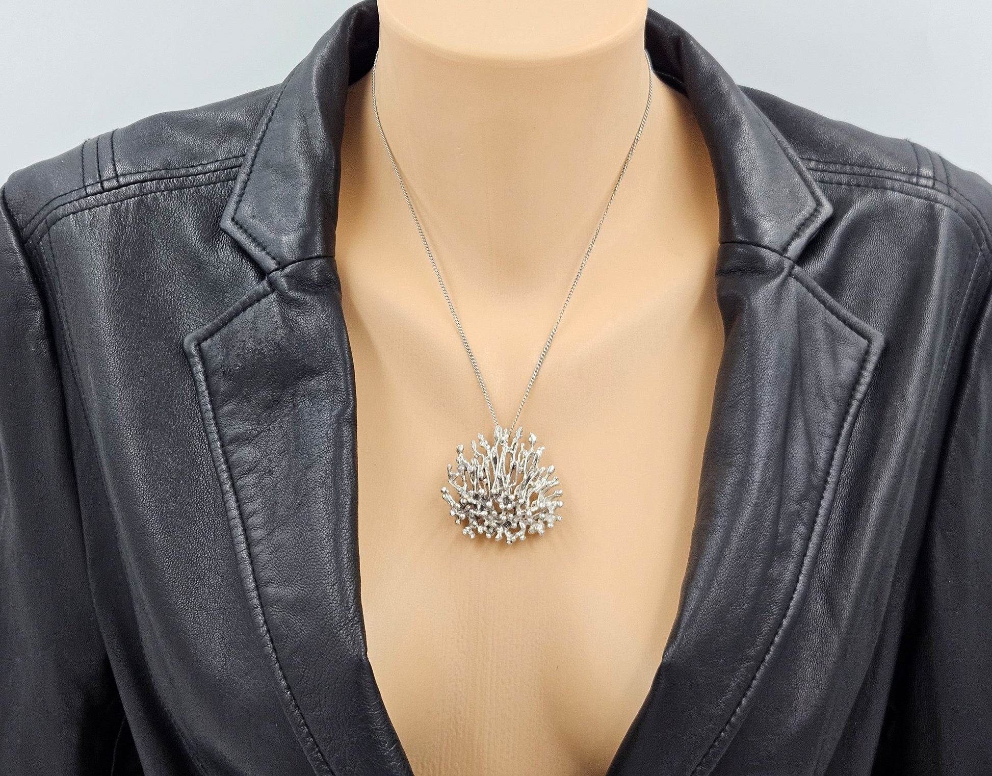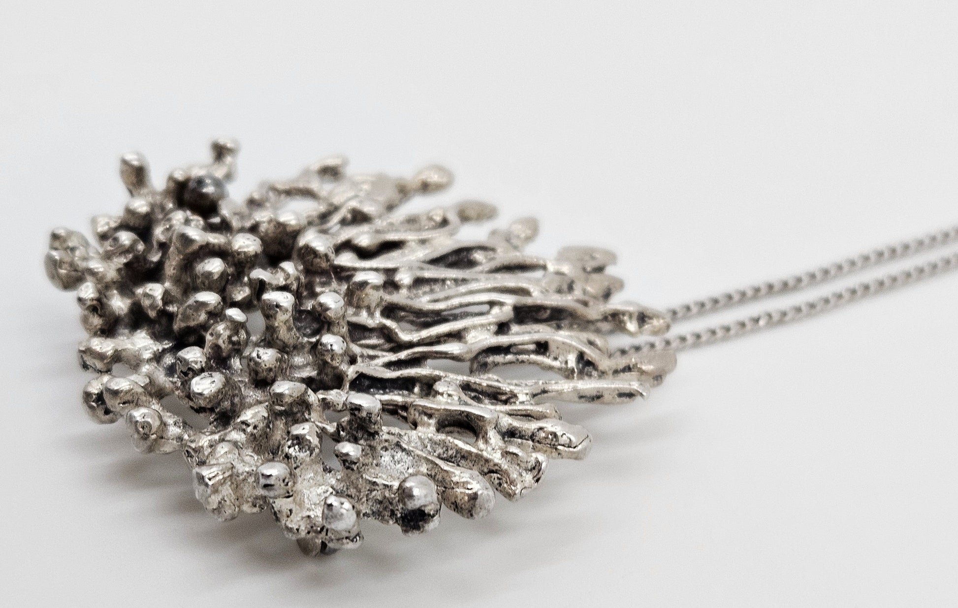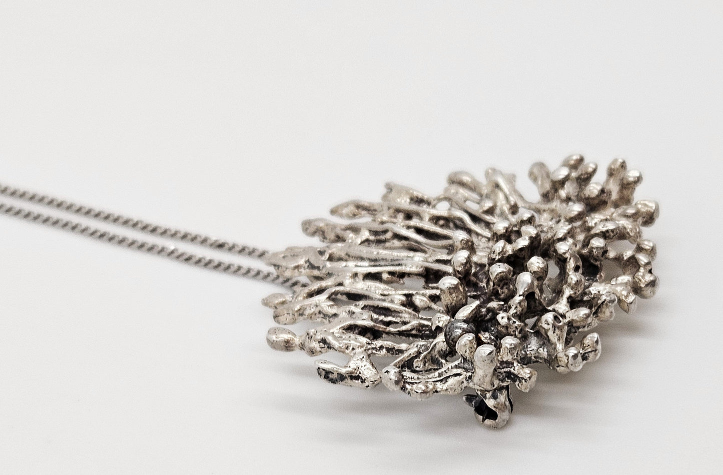Artisan Signed Sterling Silver Abstract Brutalist 3D Pin/Pendant Necklace 1960s