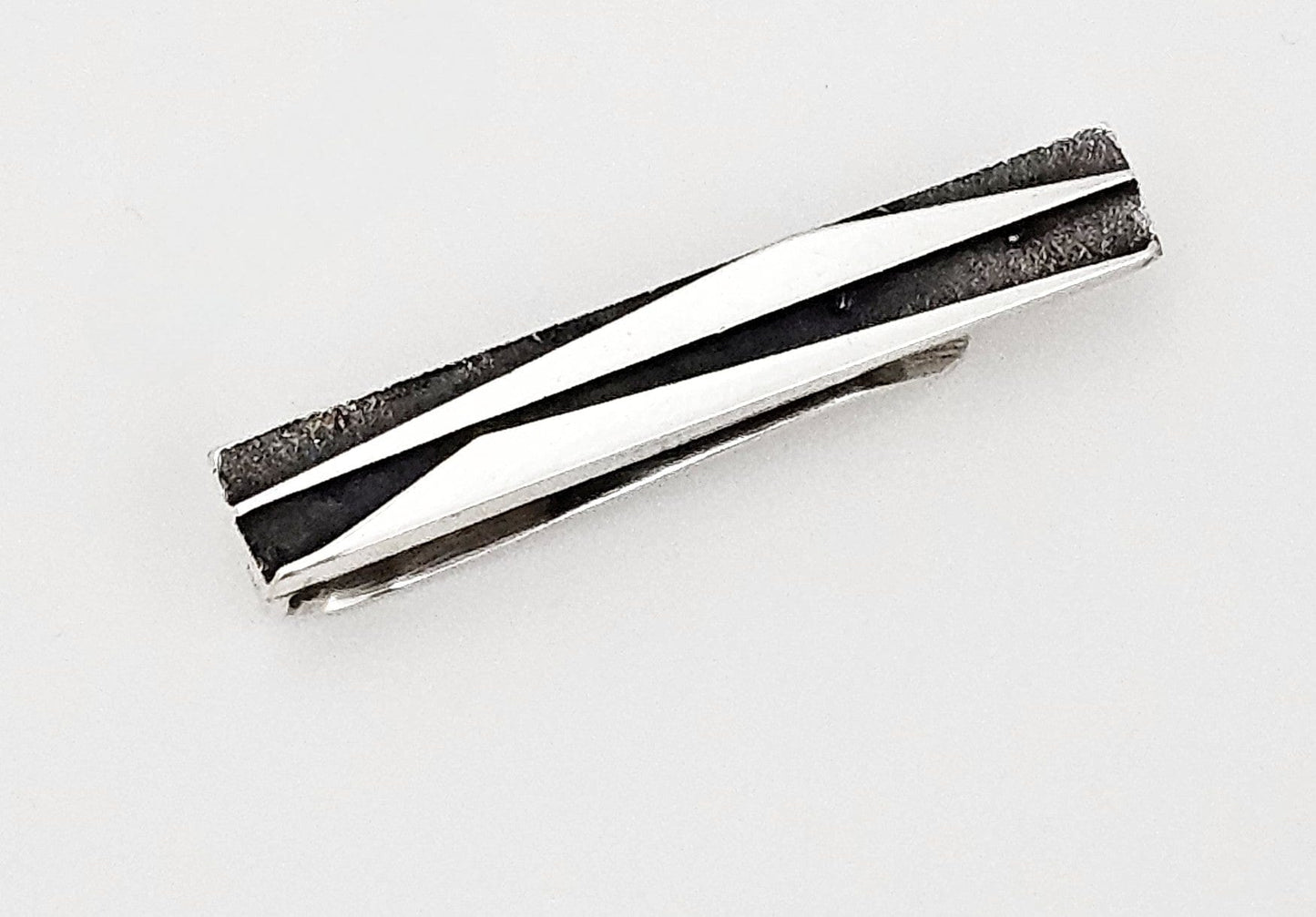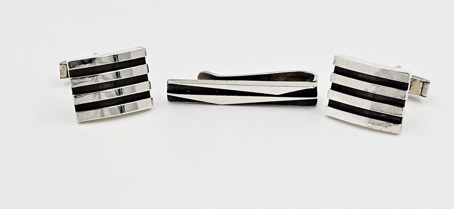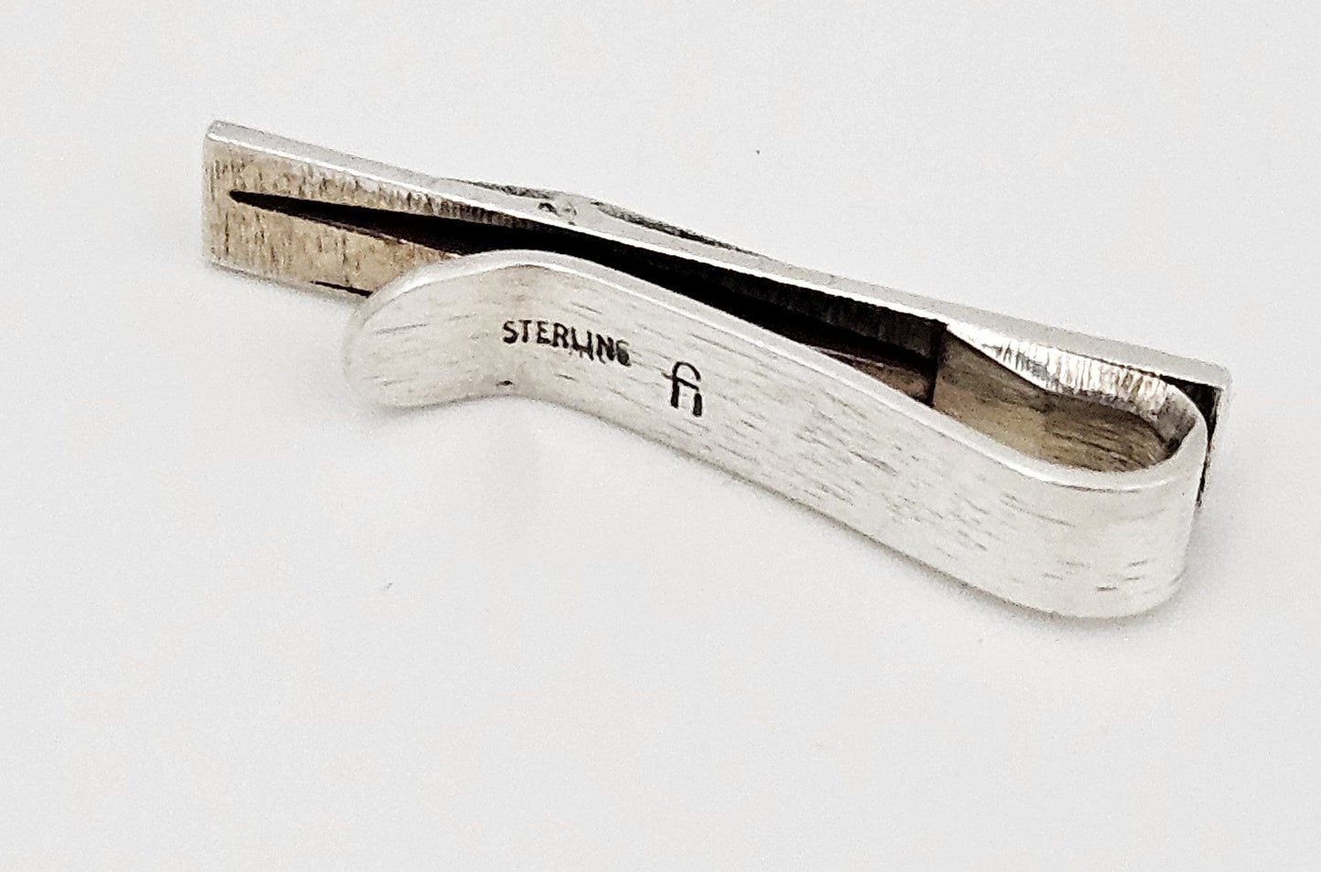Superb Harold Fithian Sterling Modernist Tie Clip and Matching Cufflinks Circa 1950/1960s Rare Collector's Set