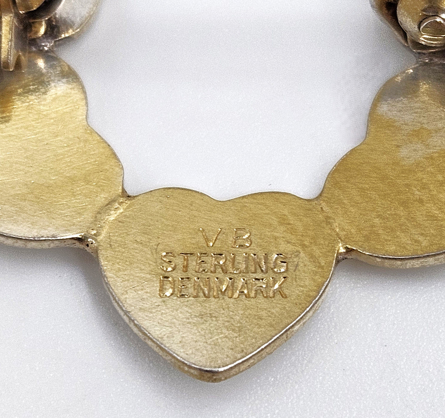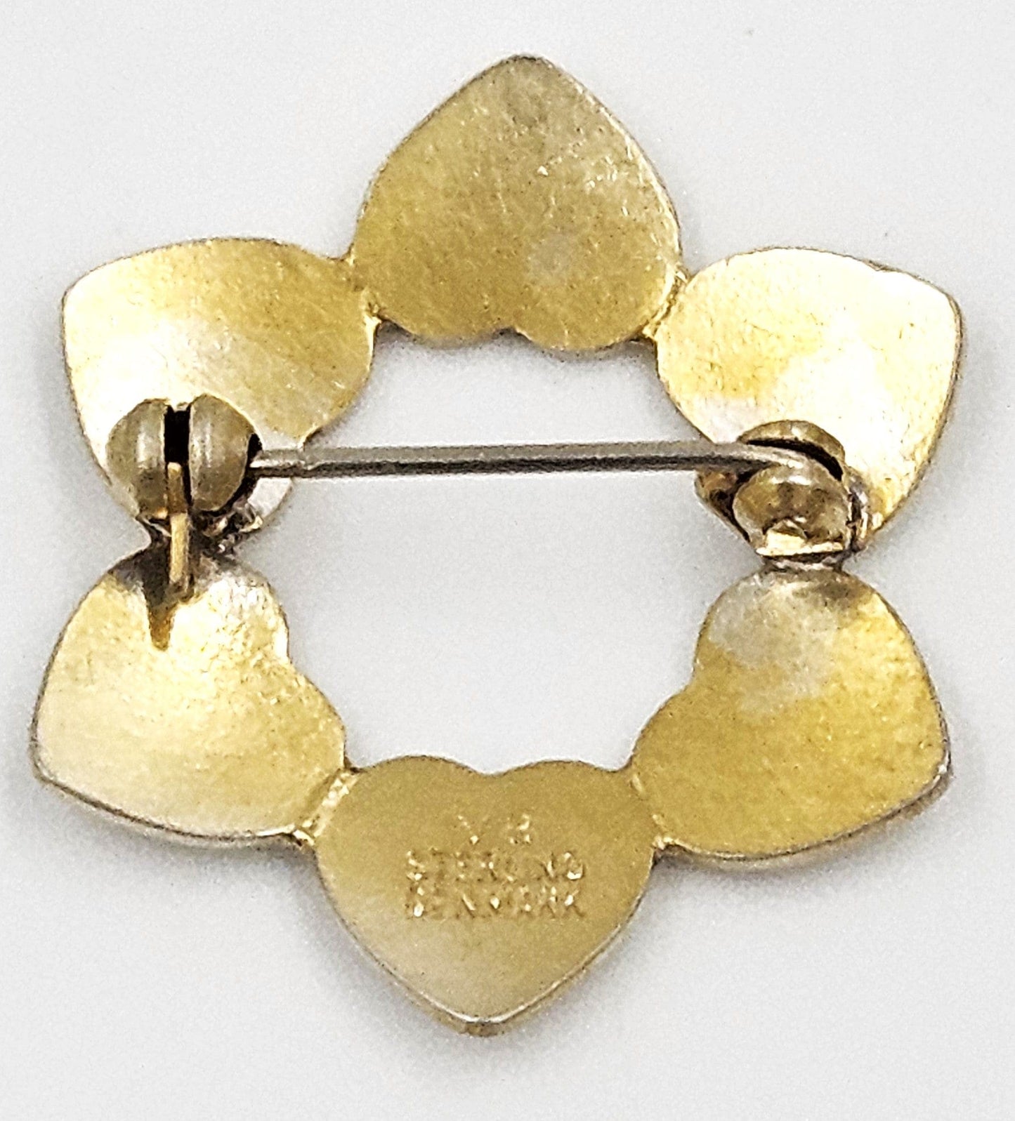 Denmark Volmer Bahner Gilt Sterling Silver & Enamel Hearts Circle Brooch Circa 1950s