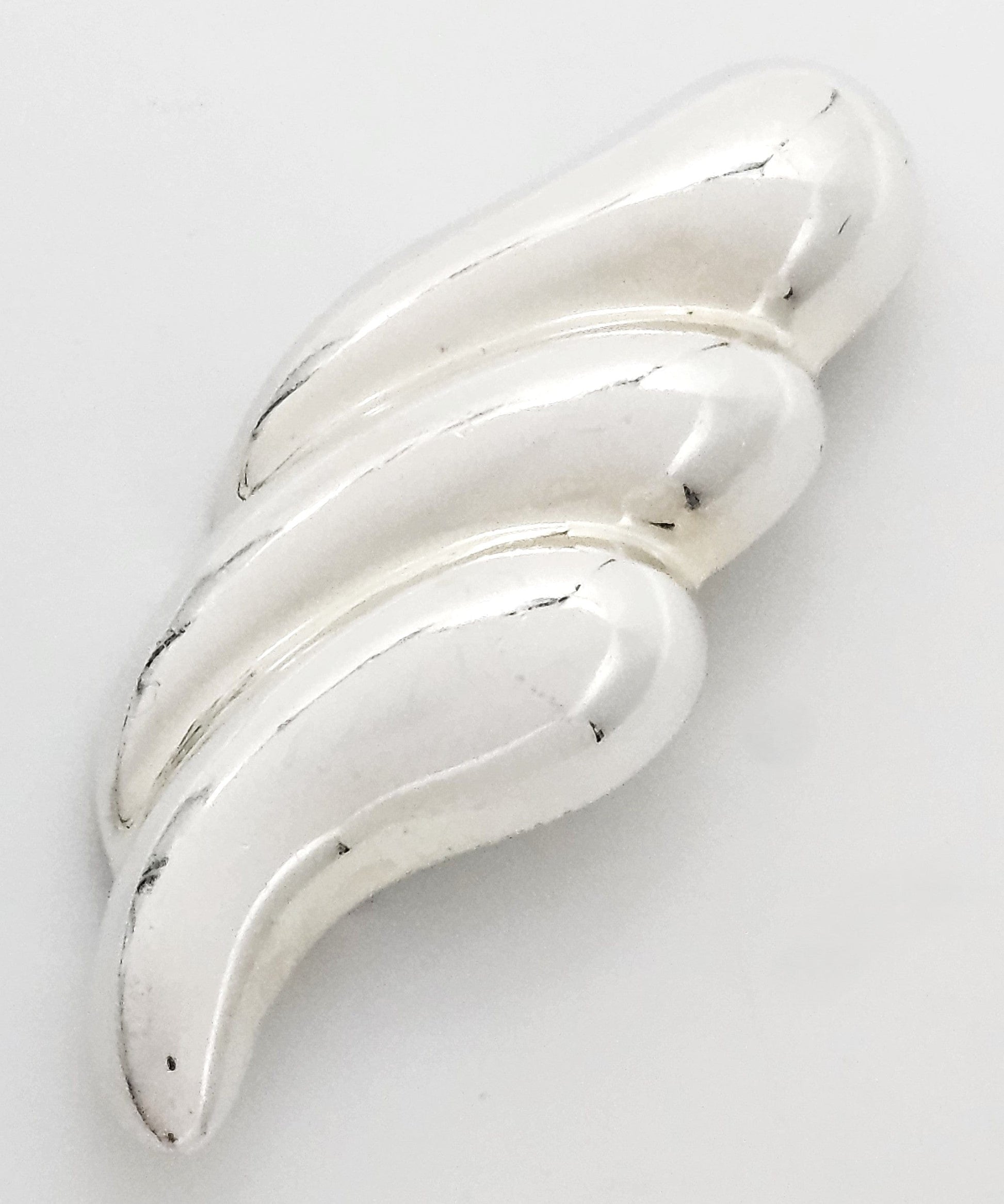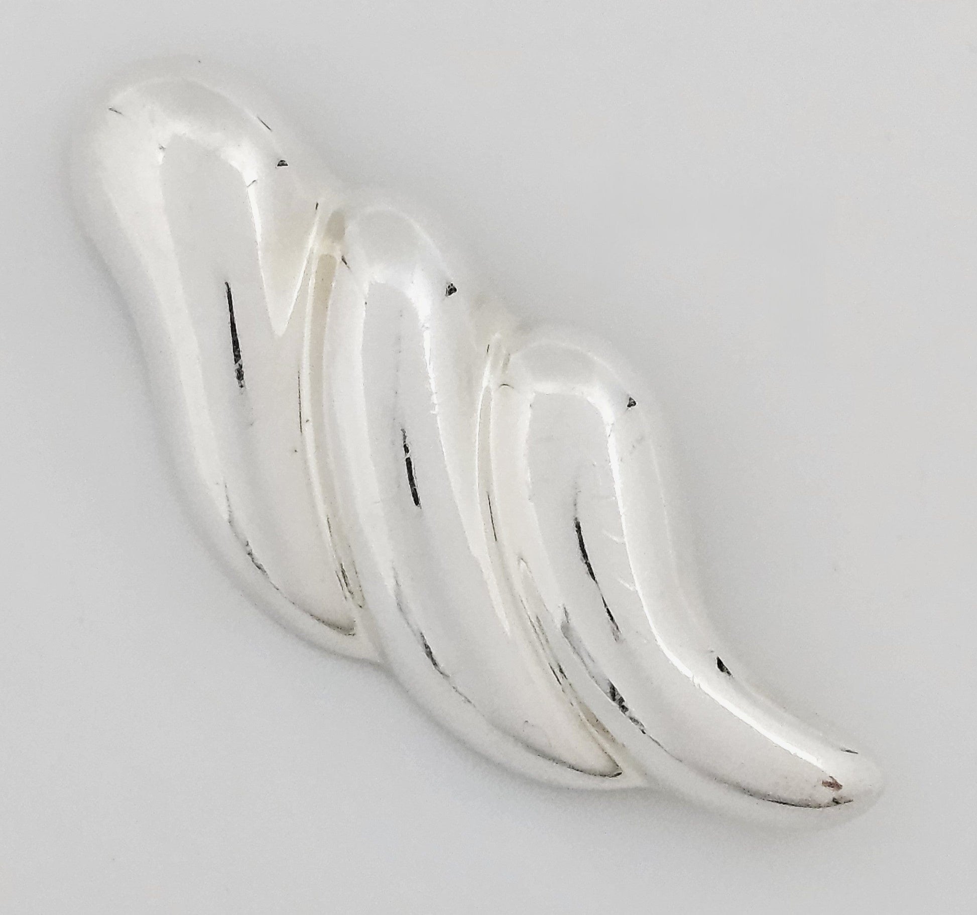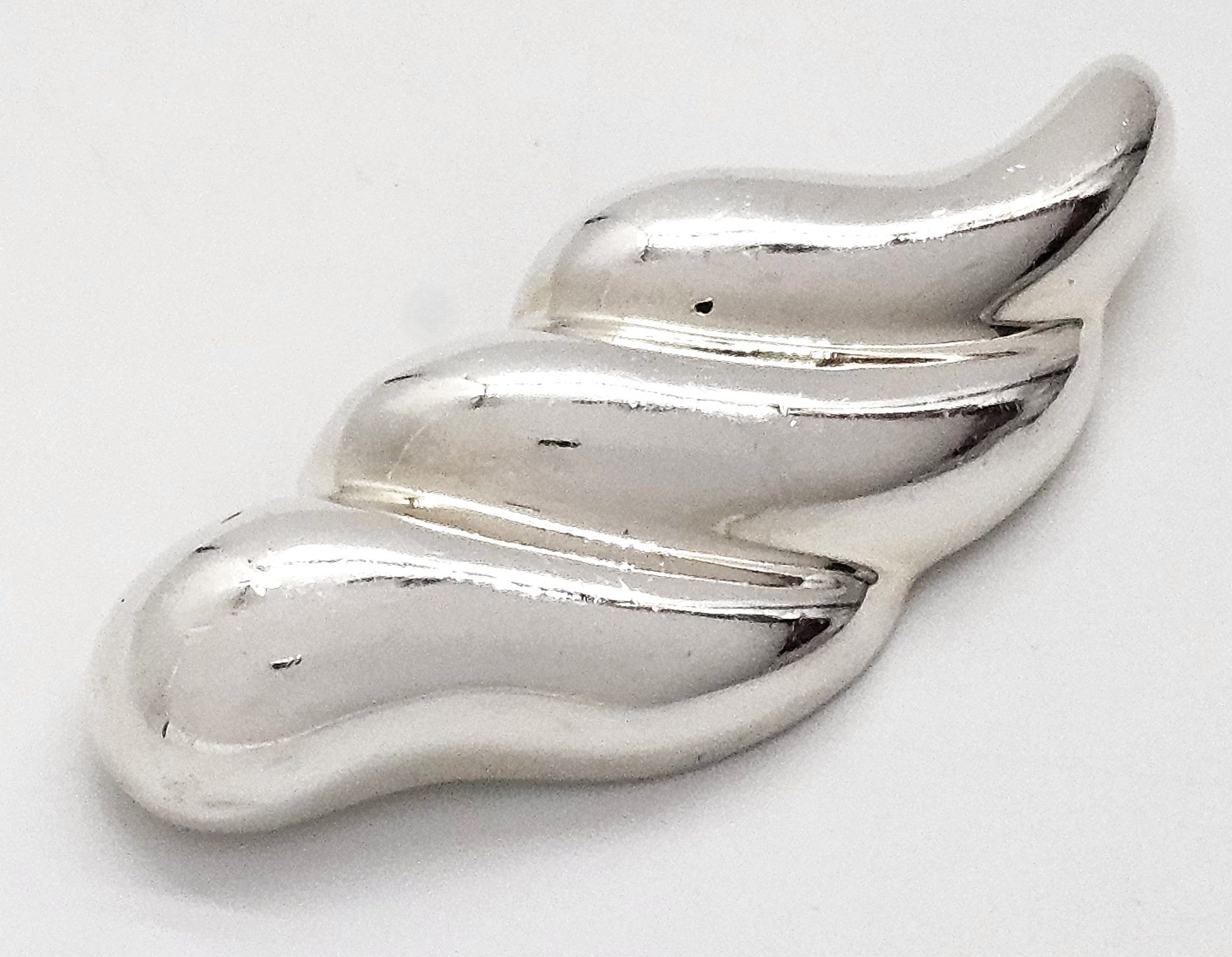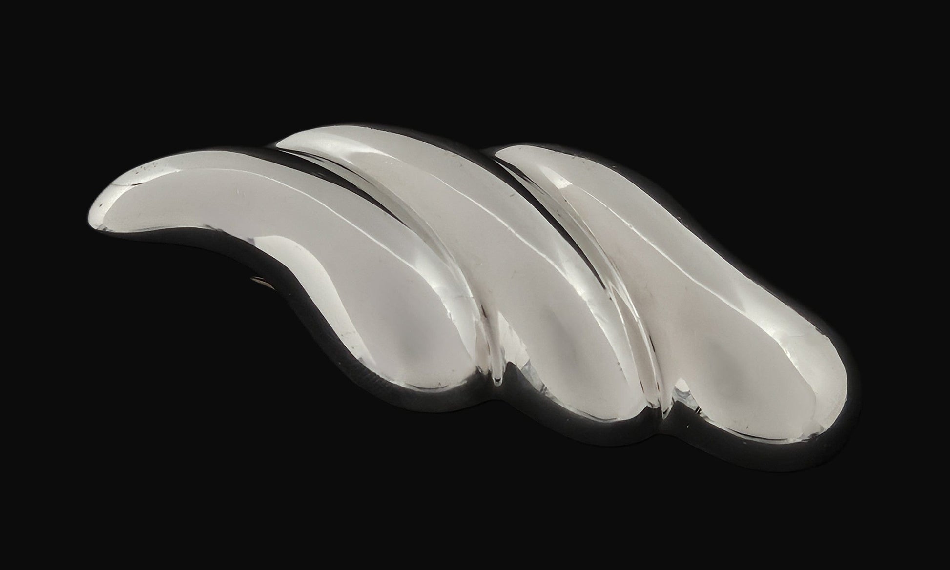Positively stunning modernist vintage Zina designer brooch. Brooch is puffy style in a wing like pattern with an extremely shiny mirror like finish. It will be professionally polished before shipping. Please excuse the lines or reflections, as it's extremely shiny and hard to photograph. Included with purchase are 2 converters so it can be worn as a pendant either vertically or horizontally. Great collector's piece as she no longer makes brooches.