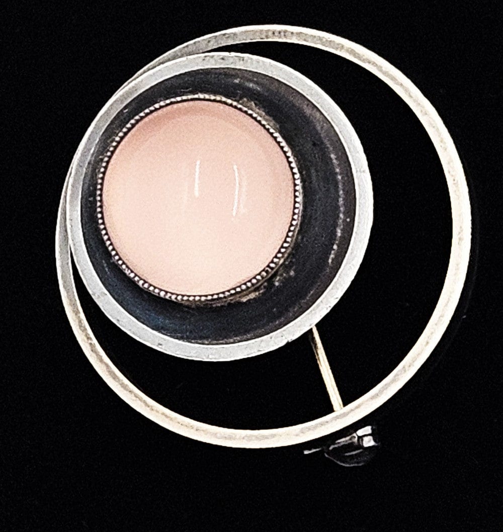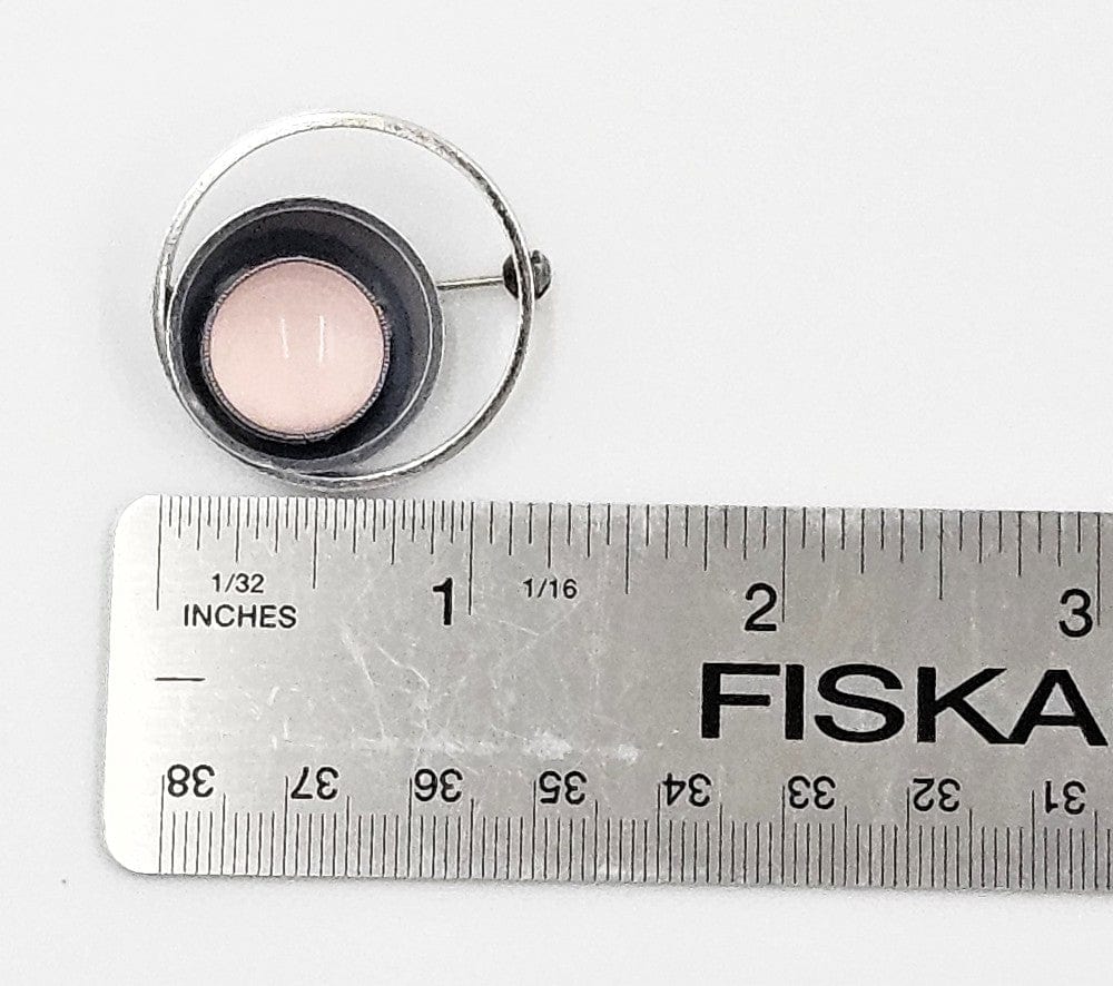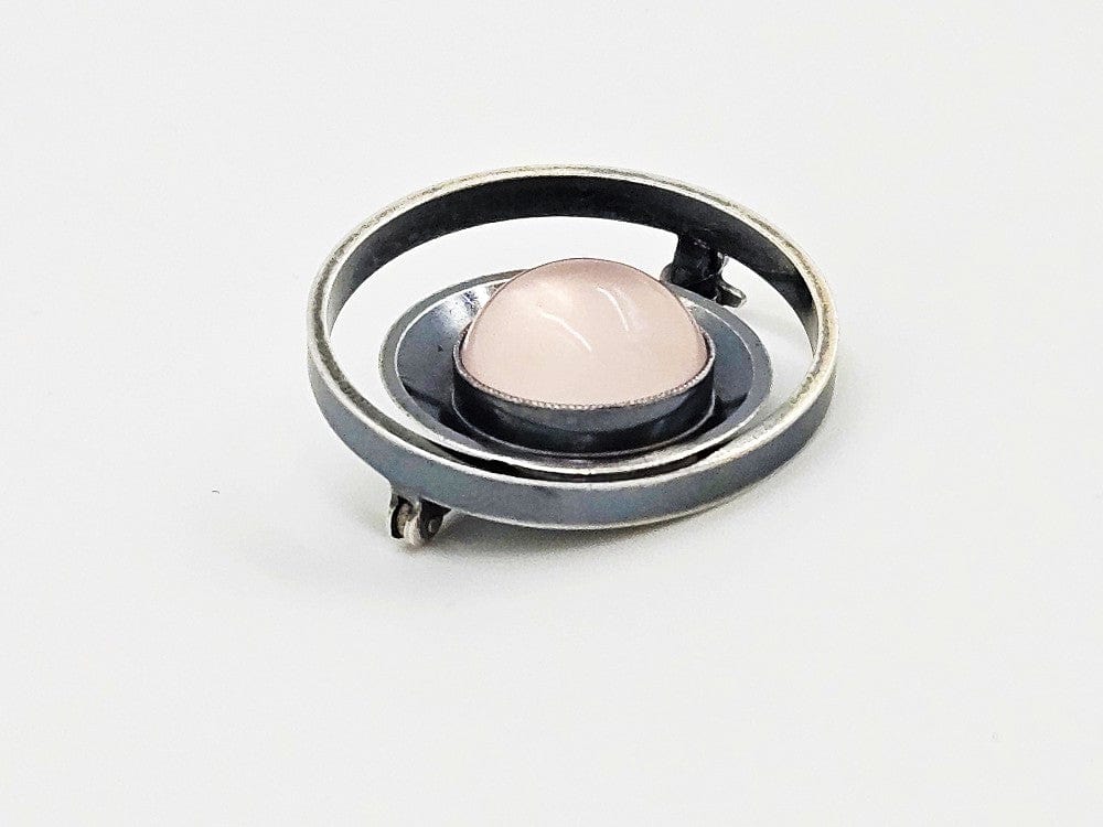 MCM Modernist Blackened Sterling Silver & Rose Quartz Scandinavian Brooch